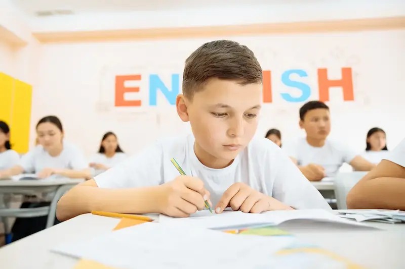 Ученик регистрируется на платформе, выбирает необходимый курс и язык обучения.